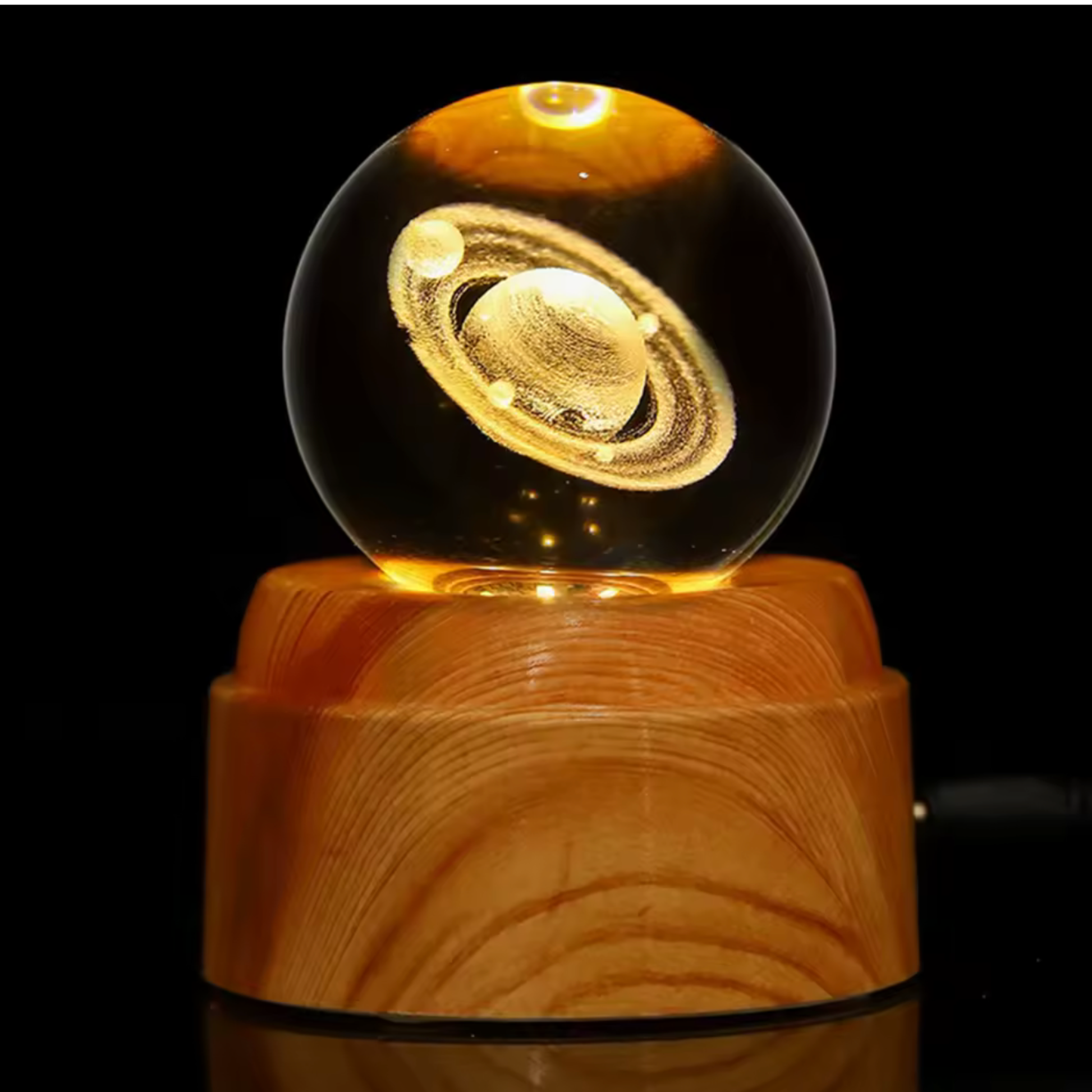 Incluye la esfera de cristal 3D, la base giratoria y el cable USB de alimentación.